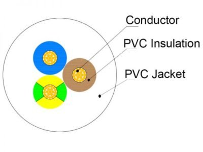 This is 300/500V H05VV-F 3×1.5mm2 3-core PVC insulation flexible Power cable used for internal wiring in switchboard of electrical appliance & wiring board of power distribution unit, connecting switch cubicle of electronics and electrical equipment, as well as wiring in installations of power supplying and lighting systems with exposed and embedded conduit